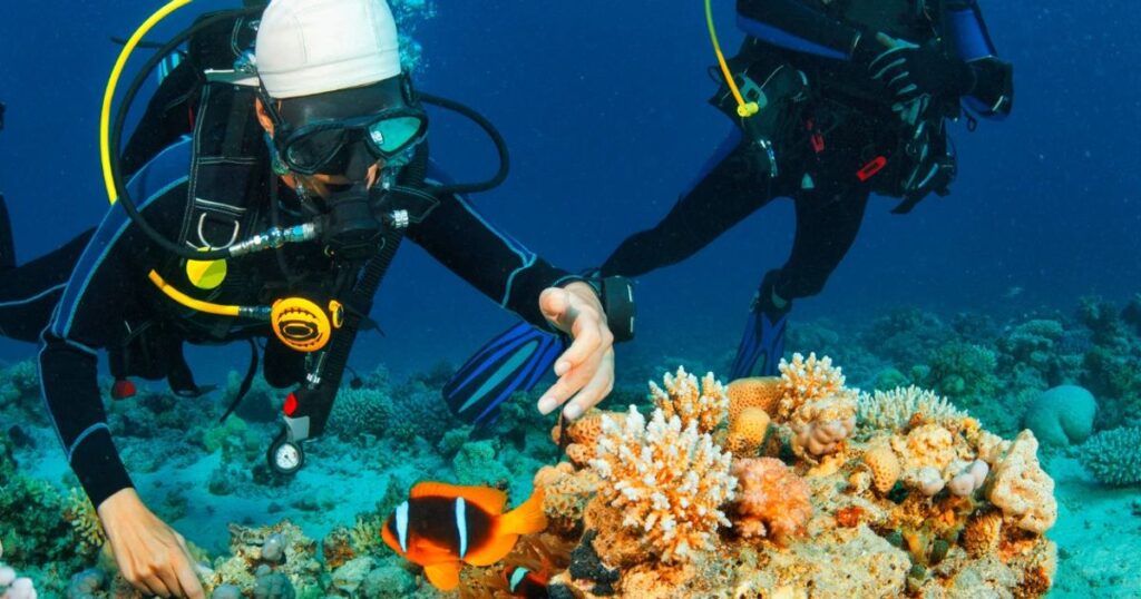 - Snorkel among coral reefs.